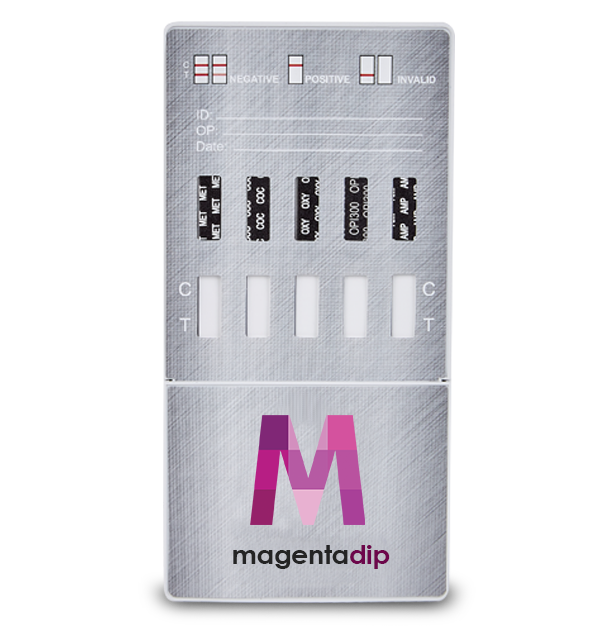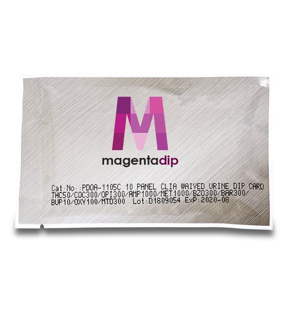 We are pleased to be able to conveniently offer to you an instant 10 Panel CLIA Waived Magenta Dip Card test kit that can be used in a professional setting or at home.